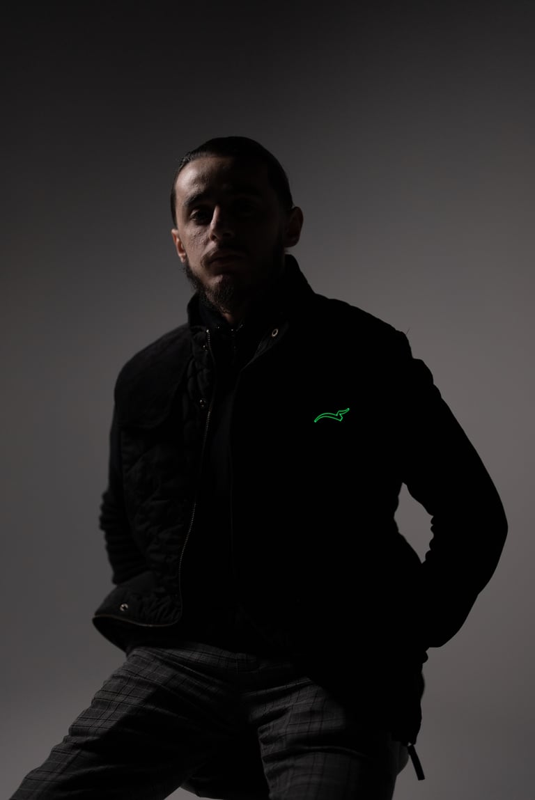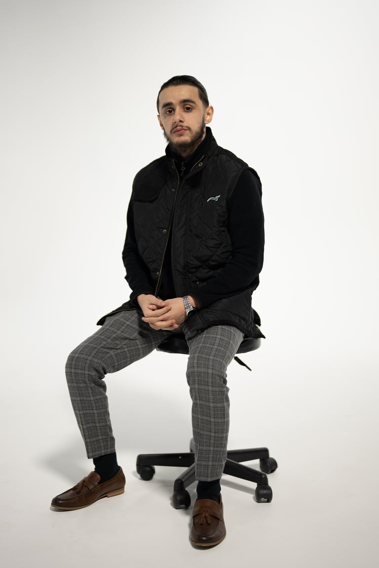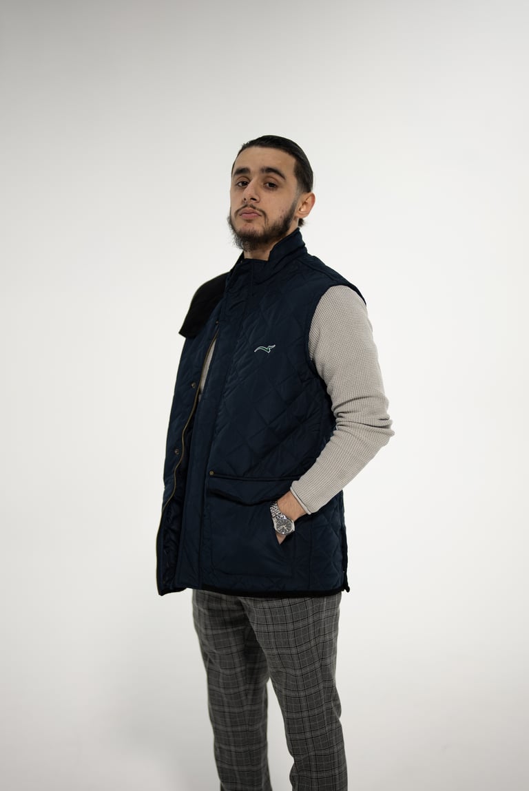 Corduroy trim on hem, inside neck and reverse side of pocket flap.